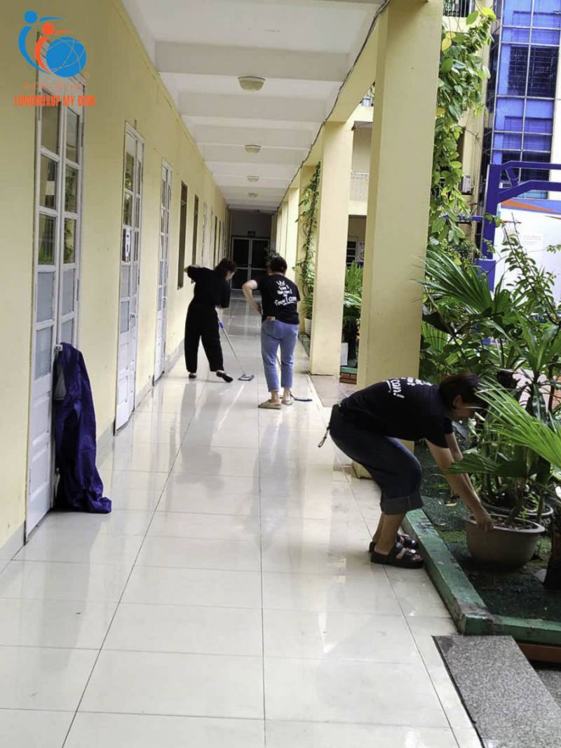 Mỗi người một nhiệm vụ, các thầy cô phân chia nhau từng khu vực để dọn dẹp. Từ quét sân, lau lớp, dọn dẹp sân thể thao, người thì kiểm tra lại cơ sở vật chất, đảm bảo mọi thứ đều sẵn sàng cho tuần học mới.